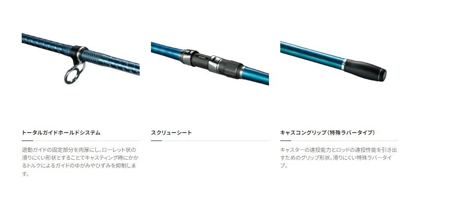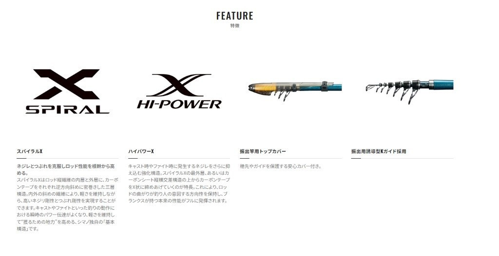 置き竿による数釣り~大物狙いまで幅広い使用を見据えて、実釣における総合性能を磨き上げた振出ロッドです。スパイラルX&ハイパワーXのダブルX構造による、抜けの良いキャストフィール、研ぎ澄まされたボトム感度、シャープなフッキング性能、強靱なリフトアップパワーを備えます。ガタ付きを抑えたスクリューシートを採用し、激流の中や障害物周りで喰わせた大物も、安定したリーリングでグイグイ寄せてくることが可能です。トップガイドにはやや大きめの10サイズをセッティングすることで、大物釣りで多用されるナイロンの太糸にも対応。カレイやアイナメ、真鯛置き竿釣法の定番ターゲットから、大型魚を対象にした沖縄エリアの打ち込み釣法、東北から北海道のアイナメ~サケ狙いまで幅広くお楽しみいただけます。