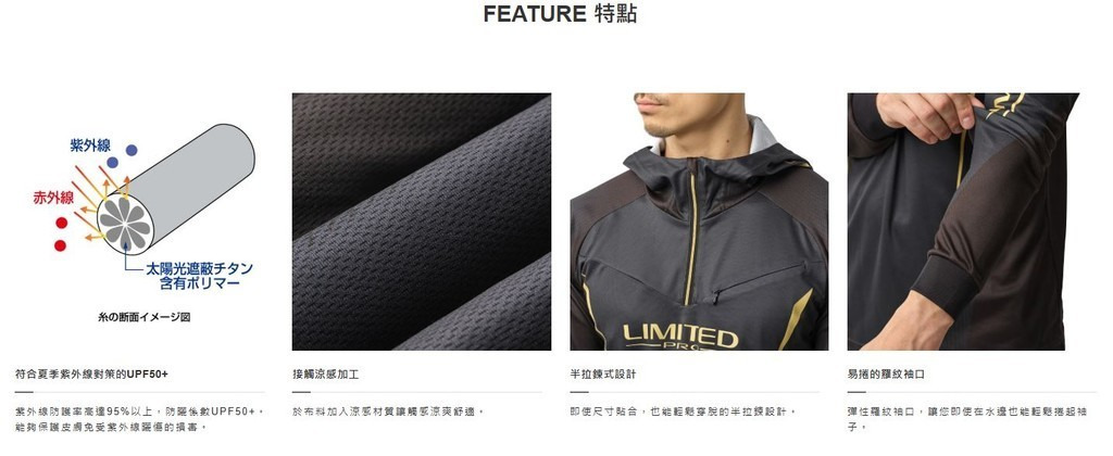 🔥【平昇釣具】🔥請先詢問有無現貨,避免造成您的困擾歡迎多利用 聊聊發問 感謝您。具有UPF50+防曬功能。速乾涼爽T恤(長袖)。於布料內加入涼感材質讓觸感涼爽舒適。兼具吸水速乾及抗UV機能,在炎熱的季節也能乾爽舒適地穿著。採用減少接觸但同時具備好穿脫的的半拉鍊設計。羅紋袖口讓您即使在水邊也能方便活動。LIMITED PRO獨有的高級圖樣也是一大特點。