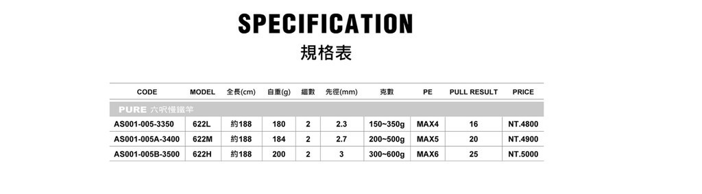 🔥【台南平昇釣具】🔥 WEFOX PURE六呎慢鐵竿 622H / 622M / 622L 實心竿 大型青物 近海扁魚