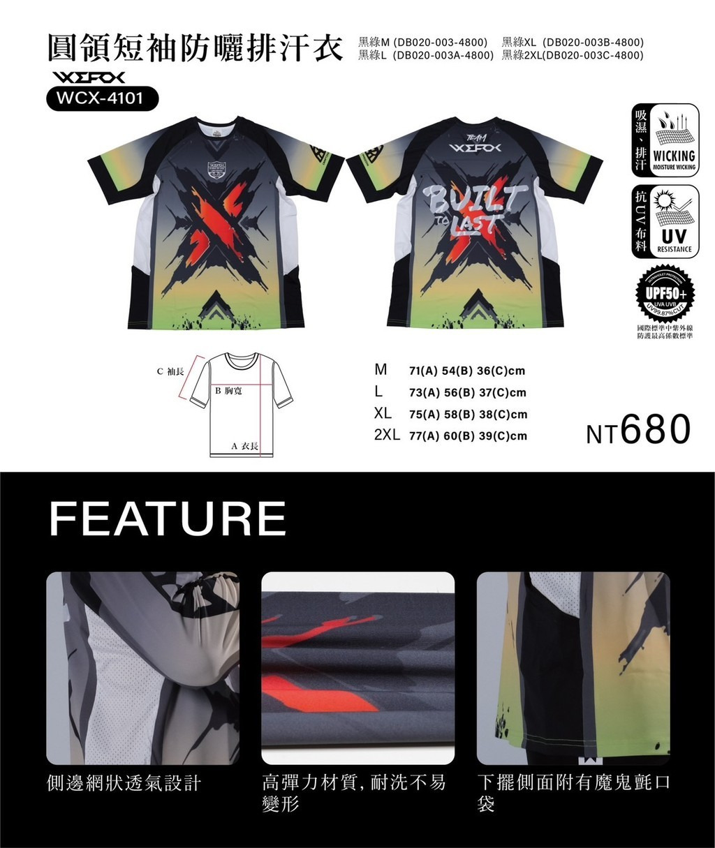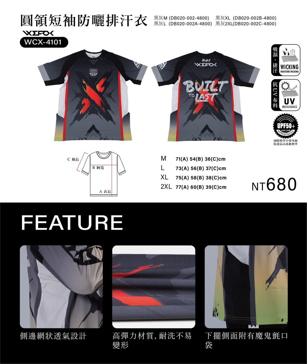 🔥【台南平昇釣具】🔥 WEFOX WCX-4101 圓領短袖防曬排汗衣 黑灰色 綠灰色