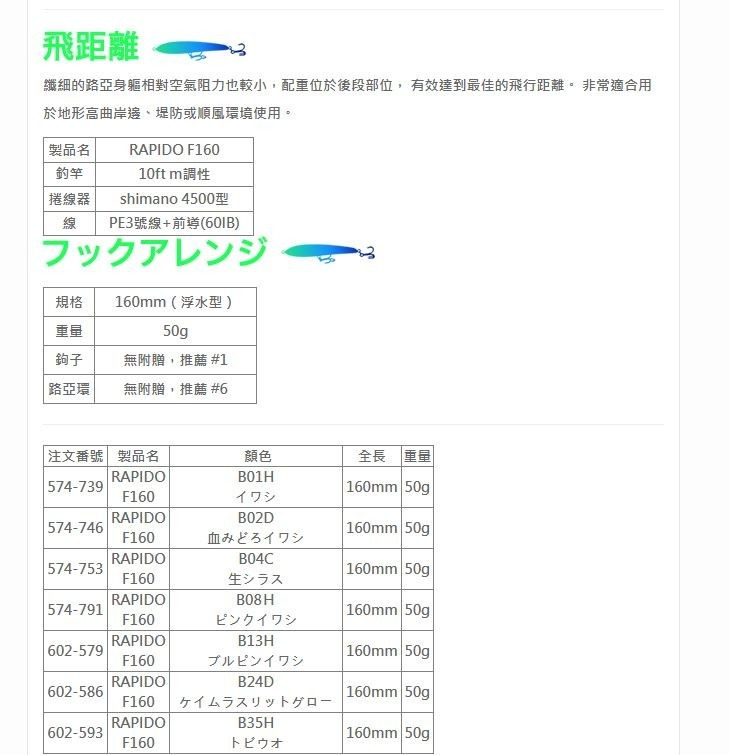 🔥【平昇釣具】🦁請先詢問有無現貨,避免造成您的困擾歡迎多利用 聊聊發問 感謝您。apide 具有纖細輪廓和的身軀,在鉛路系列中非出社的設計外型,可以吸引體型細長或活性較低的獵物上鉤。Loaded則擁有大的身體和強烈的波浪動動作,是一種即使是處的魚也能注意到它的存在的鉛筆路亞。希望大家根據上的情況,熟練使用maria的兩支鉛路亞特性,Rapide和Loaed·F160
