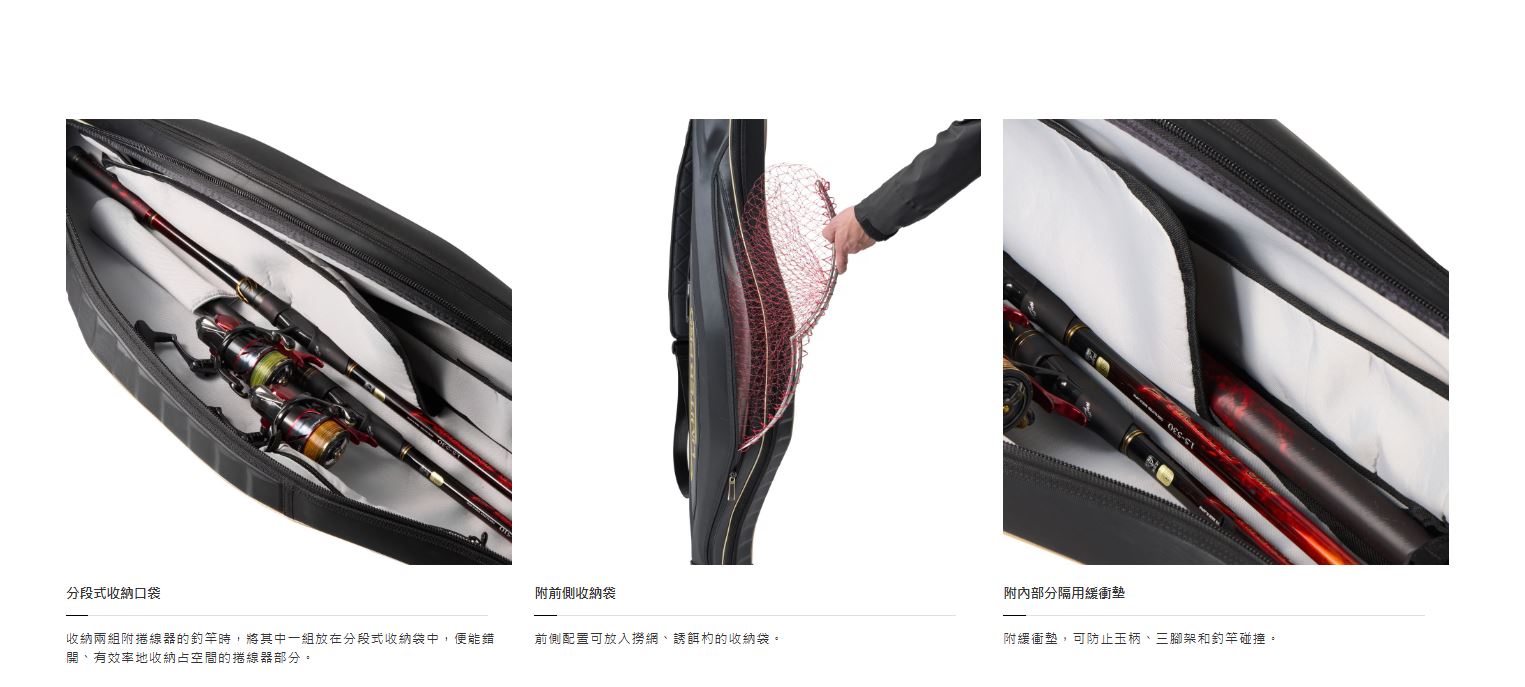 相比現有竿袋更細更輕,具剛性和耐用性能長久使用。輕量、精巧的本產品正適合在狹窄的離岸礁岩上,要掛在三腳架或傳遞行李的時候。誠心推薦給以嚴選裝備挑戰荒礁的磯釣者的LIMITED PRO商品。